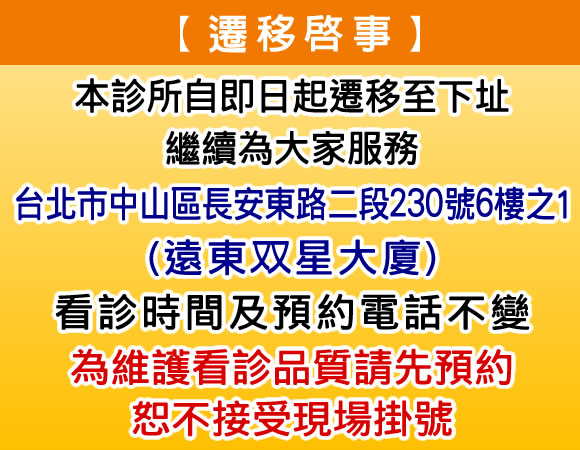 遷移啟事:本診所自即日起遷移至下址繼續為大家服務